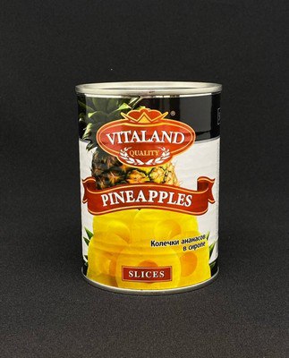 Состав: Ананасы, вода, сахар (14-17%), регулятор кислотности: лимонная кислота. Энергетическая ценность в 100 г 251 ккал