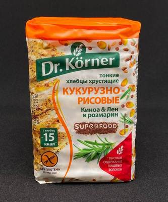 Хлебцы хрустящие Кукурузно рисовые с киноа, льном и розмарином100гр, шт