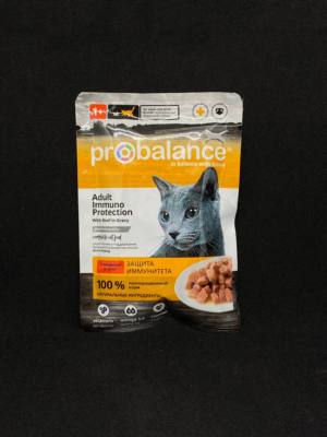 Корм ProBalance влажный для взрослых кошек, для иммунитета Кусочки с гов. в соусе 85 г, шт