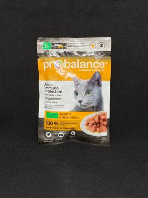 Корм ProBalance влажный для взрослых кошек, для иммунитета (Кусочки с кроликом в соусе) 85 г, шт
