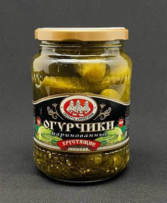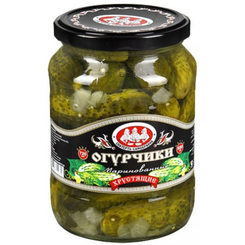 Состав:Огурцы, вода питьевая, сахар, соль, зелень укропа, семена горчицы, регулятор кислотности: кислота уксусная; чеснок и другие пряности.