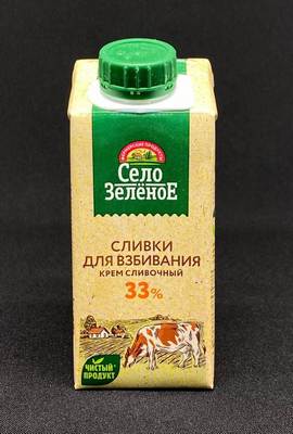 Сливки для взбивания Село Зеленое 33% 500гр стер ТВА, шт (М)