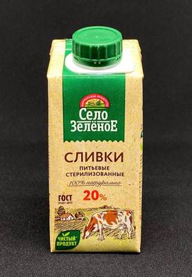 Сливки Село Зеленое 20% 200гр стер ТВА, шт (М)