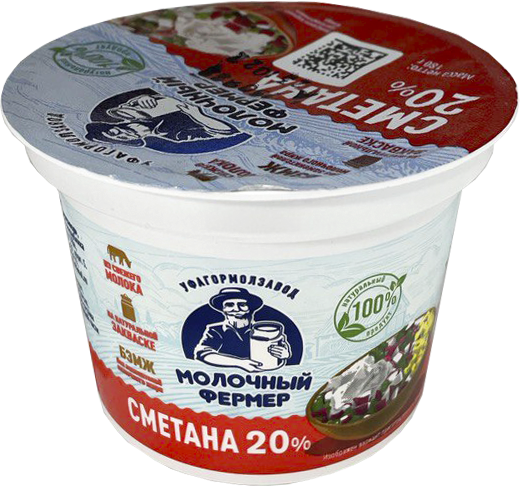 Сметана Молочный фермер 20% стакан 180 гр, шт. (М)
