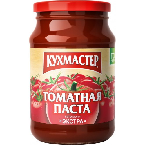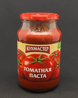 Томатная паста. Содержание сухих веществ 23-25%. Масса нетто 1 кгю Широко применяется для приготовления блюд.